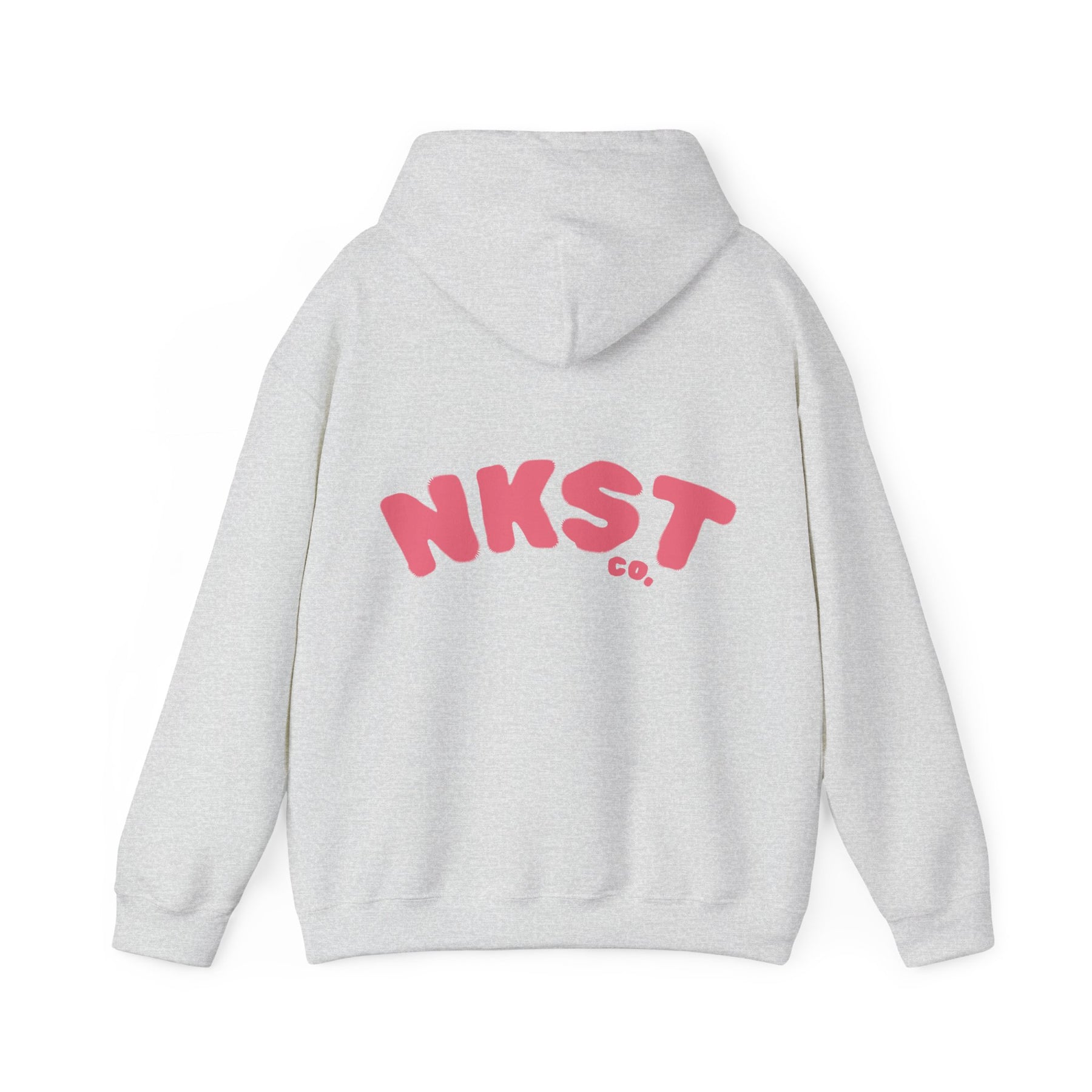 A soft, cozy hooded sweatshirt that reads like a quiet inside joke between friends. Clean white fleece frames playful pink lettering—small NKST on the chest, a bubbly NKST Co. across the back—giving the hoodie a minimalist, nostalgic vibe. Wear it to slow mornings at the cafe, late-night drives, or when you want an easy layer that feels like someone knitted calm into fabric. The roomy pouch pocket and adjustable hood keep you comfortable; the understated logo gives the look personality without shouting. It’s the kind of sweatshirt you reach for when you want to feel grounded and a little bit whimsical at the same time.